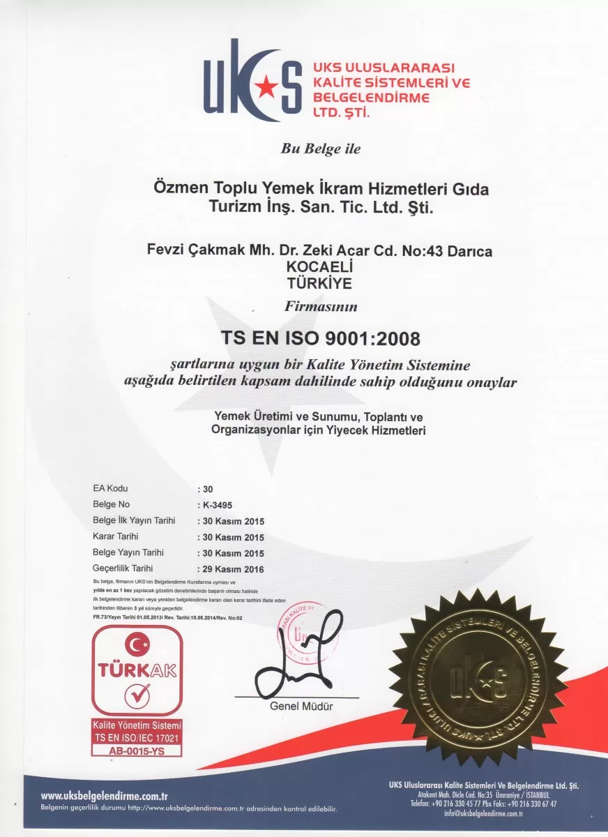 • TS EN ISO 9001:2008 Kalite Yönetim Sistemi