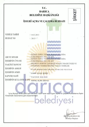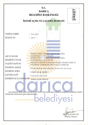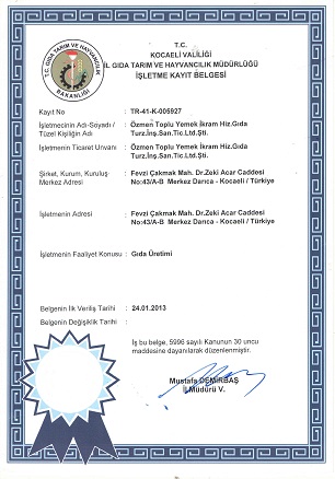 • Kocaeli Valiliği İşletme Kayıt Belgesi TR-41-K-005927
